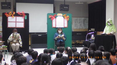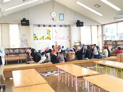 2年生が集まり、楽しい読み聞かせの始まりです。