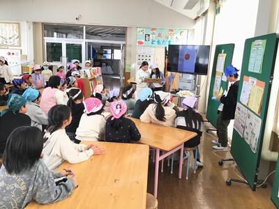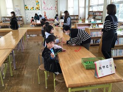 日頃接している低学年の児童よりさらに小さい子供たちとの交流に4年生たちの「お兄さん・お姉さんレベル」がさらにアップしました。