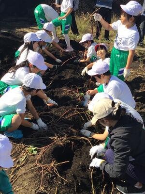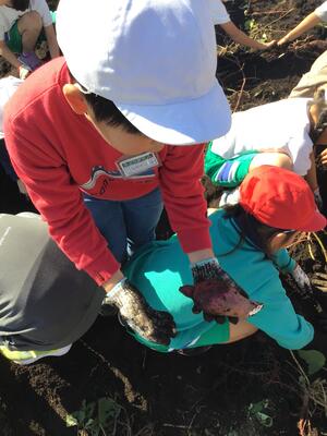 春先に一本ずつ埋めたサツマイモの茎から大きなサツマイモができるなんて、不思議ですね。