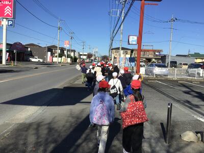 向かう先は茂呂保育園です。総合的な学習の時間での福祉学習の一環として、保育園との交流を行いました。