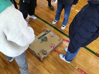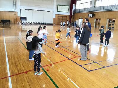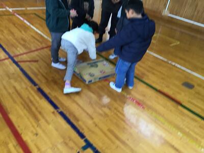体育館では、「けん玉」です。これは、難しいですよ。それでもなれて、上手に載せられるようになりました。