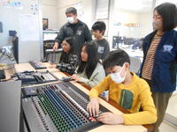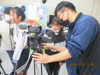 こちらは、テレビに映る側ですね。 残念ながら、実際の放送はされないと思われますが、子供たちは、番組作り体験をしてきたようです。