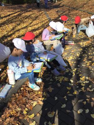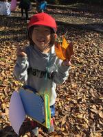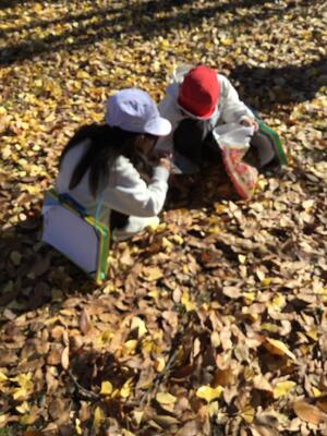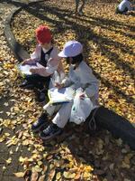 落ち葉を踏みしめる音を聞いたり、五感を通して秋を感じているようです。