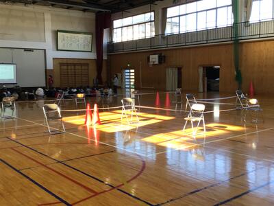 終業式は、体育館です。集合完了。