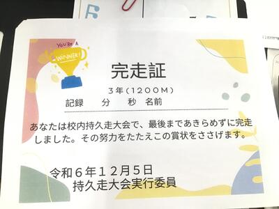 この完走証、持久走大会実行委員会の6年生がデザインしました。