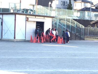 放課後に職員で持久走大会の準備を行いました。