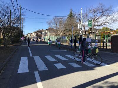 交通指導、安全管理のため、PTAの皆様も集まっています。ありがとうございます。
