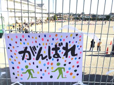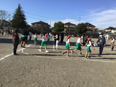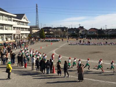 晴天の下、持久走大会スタートです。