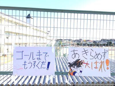 委員会活動、楽しそうですね。一階の工事現場の壁には、持久走大会のポスターが貼られています。ICTクラブ作成とのことです。デザイン性の高い作品ぞろいです。