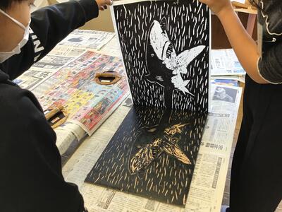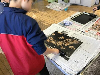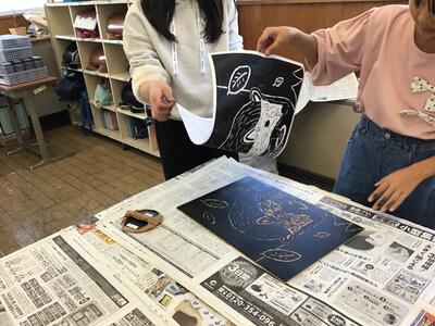 芸術の秋ですね。今の時期は、多くの学年が版画制作に取り組んでいます。