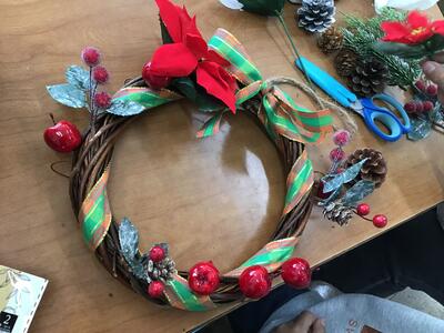 午後は、2年生の学年PTAが行われました。2年生保護者の企画、運営によるリース作りです。