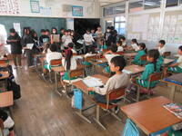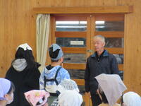 もち米の栽培を教えてくださった地域のボランティアティーチャーの方にも来ていただきました。おかげさまで、おいしいおにぎりが完成します。ありがとうございました。