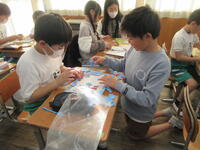 5年生が図工の時間に作ったパズルで2年生に遊んでもらおうという企画です。そういうねらいがあると作品作りにも、プラスのやりがいが出ますね。