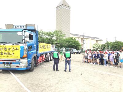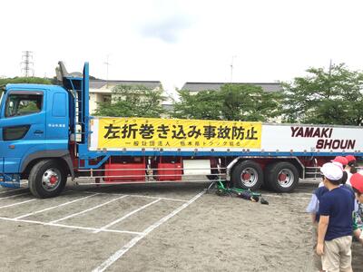今回の交通安全教室では、鹿沼市の交通政策課、警察からの講師の先生に加え、トラック協会の皆様にもお越しいただきました。