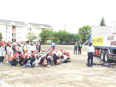 交通安全教室は続きますが、トラック協会の皆様は、お仕事に向かいます。