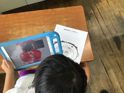 よく噛んで、うがいをした後は、タブレットで自分の口の中の写真を撮って観察しました。