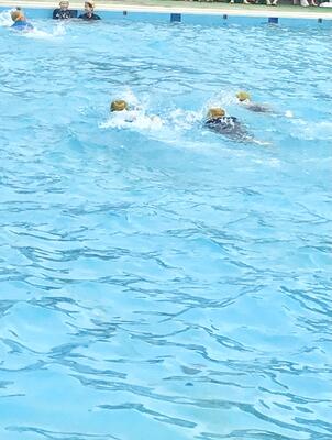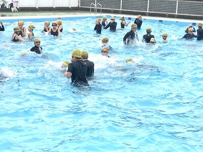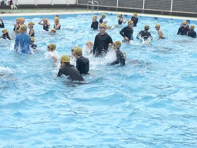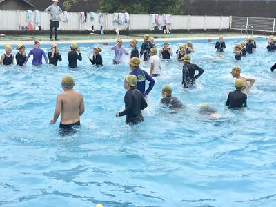プール清掃に力を尽くしてくれた5,6年生が最初に入れたのはよかったですね。