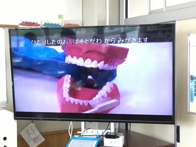 先日記事にした、歯磨き指導がここでも行われています。内容はちょっと難しくなっているようです。