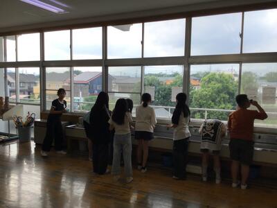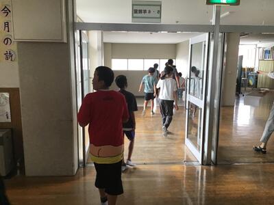 実は、今、不審者が学校に侵入しているという想定で訓練をしています。(6月25日の避難訓練です)