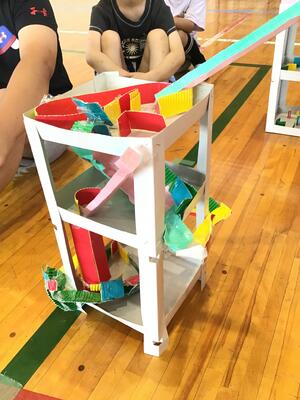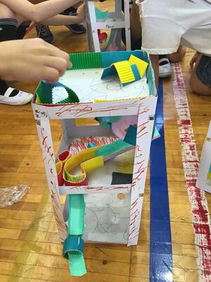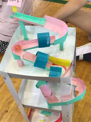 スタートするとビー玉がうまく走って、きわどいところをクリアしながらゴールまで転がっていくピタゴラスイッチ的なものと、
