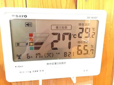 毎日暑い日が続きますね。8:21現在、体育館の温度計はすでに29℃です。