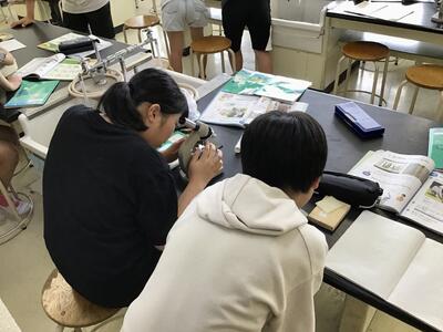 ちょっとのぞいた理科室では、6年生が顕微鏡観察の真っ最中でした。