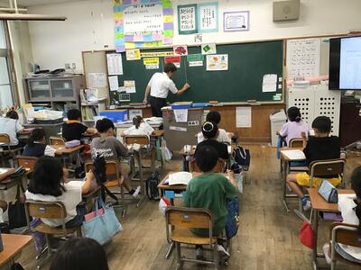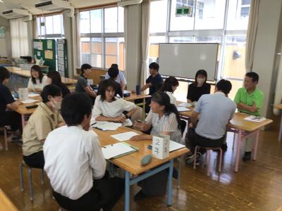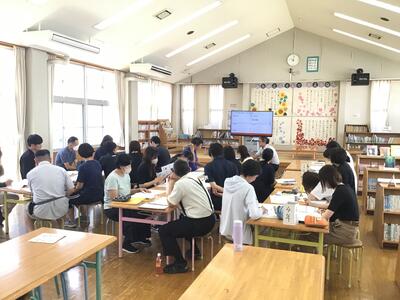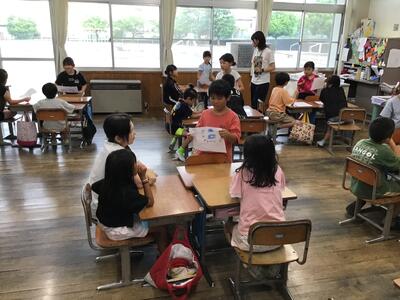 こちらの教室は、グループで発表会をしているようです。何年生でしょうか?