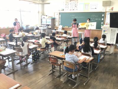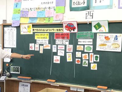 ご家庭でも夕食の時などに、3つの食品群「エネルギーになるもの、体をつくるもの、調子を整えるもの」について話題にしてみてください。3年生の食育でした。