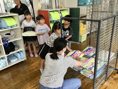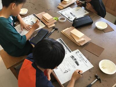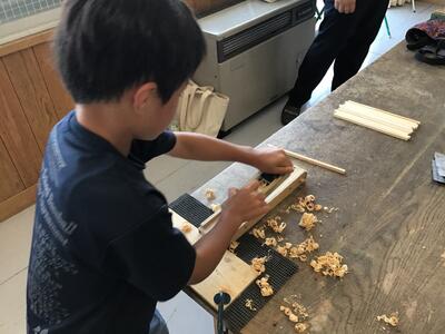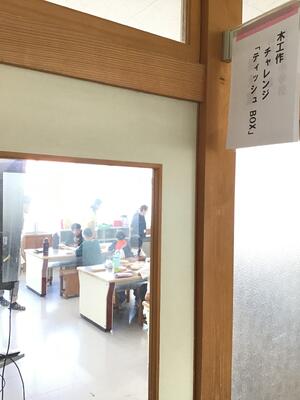 まずは、「木」について、クイズ形式で学んでいました。この後、ティッシュボックスやお箸などができるようです。