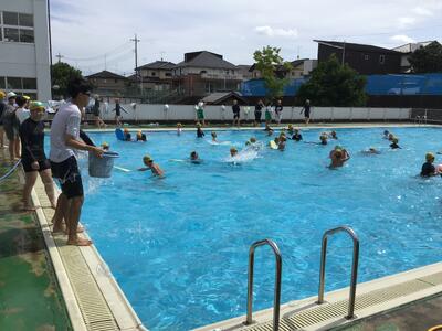 台風の影響もなくなり、プール日和です。6時間目ですから暑いですね。