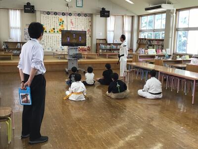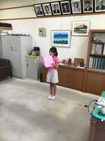 撮影現場は、校長室です。代表児童が4,5,6,7月を総括しスピーチを行ったり、