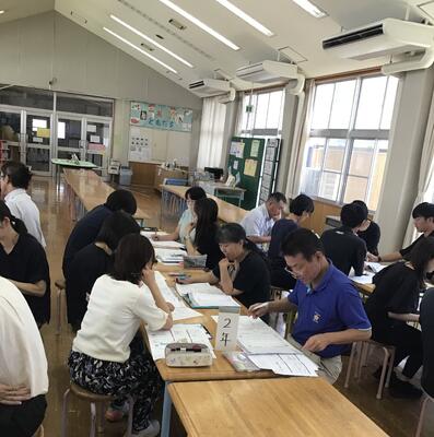 学校長の話があったり、児童指導主任から夏休みの過ごし方についてのお話があったりと節目となる式となりました。