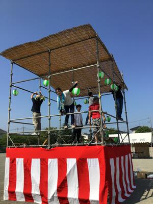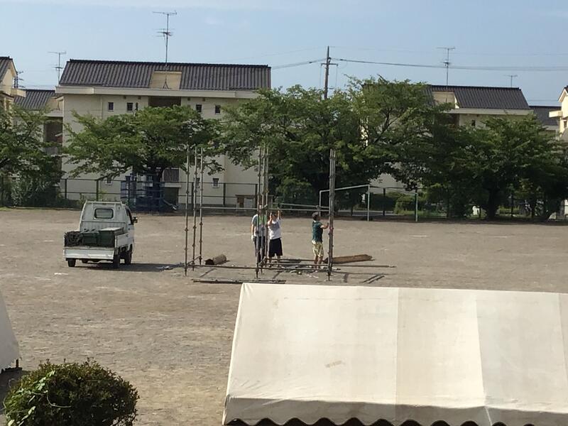 みどりっ子納涼祭当日となりました。午前7時より 関係役員の皆様が集まり準備開始です。