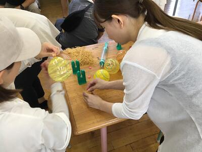 東中学校の科学部、オーケストラ部の皆さんによる、科学工作と楽器体験です。