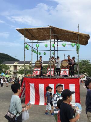 まずは、盆踊りからのスタートです。高龗蓮さんの軽快なお囃子にのって踊ります。