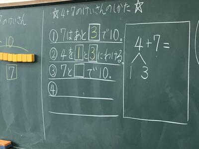 「4+7=」の計算をいかにうまく行うかを考えているようです。