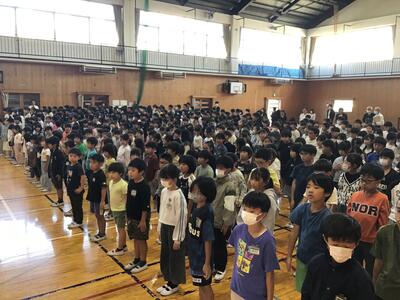 令和7年度前期終業式です。前後期制は本年度からのスタートなので、この時期に終業式を行うのは初めてです。今までになかった「節目の時期」がこれから毎年きますので、「節目」の意味について話しました。