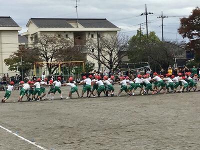 運動会の定番、綱引きですね。3,4年生の団体競技、タイトルは「綱引き」。そのままでした。