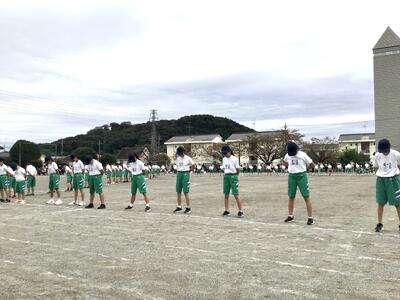 準備運動の中にある「体ジャンケン」。これ!おもしろいですよ。これは「パー」