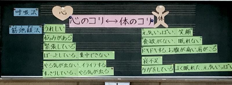 今日は、学校保健委員会「自分や家族に出来るリラクゼーション~心とからだはつながっている~」