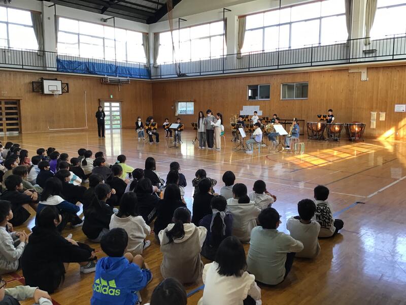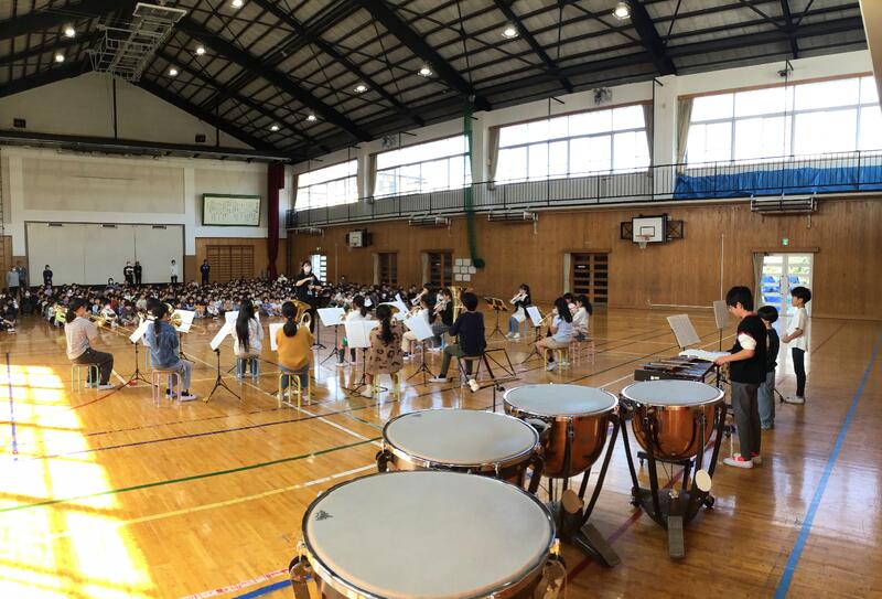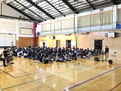 昼休みには、音楽集会ということで、金管バンドの皆さんが演奏を披露してくれました。今週金曜日に行われる「鹿沼市小中学校合同音楽会」で演奏する演目です。タイトルは「大きな古時計による変奏曲」です。 「による変奏曲」の部分!かっこいいと思いませんか。(程度の低いことを言ってしまいましたが、素人の考えはこんなもんです。