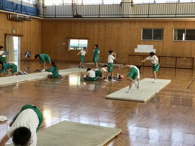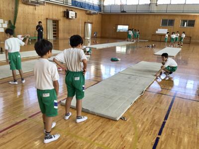 同じクラスです。子供たちに次は何を?と聞くと「マット運動です。」と言っていたのでのぞいてみました。