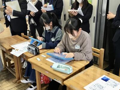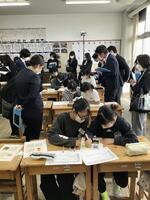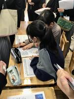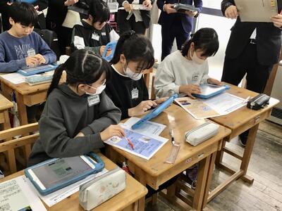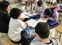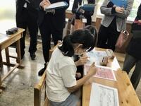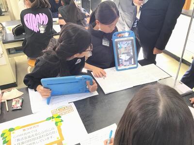 大勢の参観者の目が気になるところですが、子供たちは真剣に考え、話し合ってメモをしながら検討を進めていました。