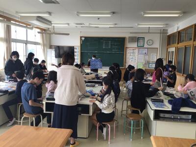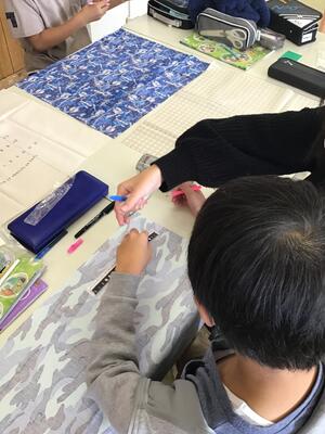 こちらは、家庭科の授業です。ランチマットを作成するということでした。
