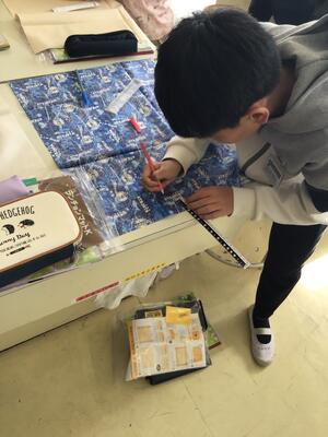 この後、ミシンを使う活動もあるようですが、その下準備のようです。