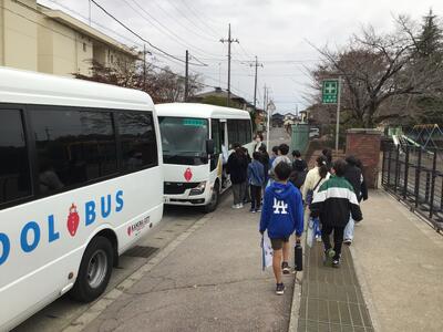 5年生がバスに乗ってお出かけです。