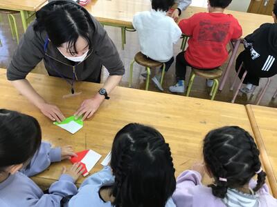 こちらは今でも子供たちには人気ですが、「折り紙」でした。何ができるかな。