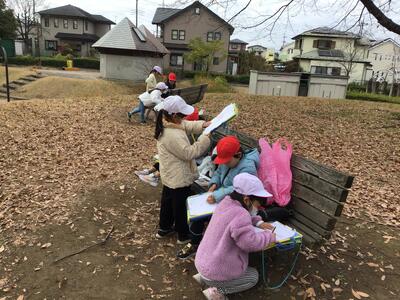 今日は、校外活動が多いようです。お天気はご存じのように肌寒い曇り空です。