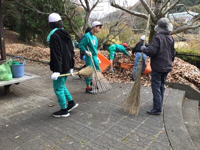 いやはや、すごい量の落ち葉ですね。「エレガンス」の皆様と一緒に