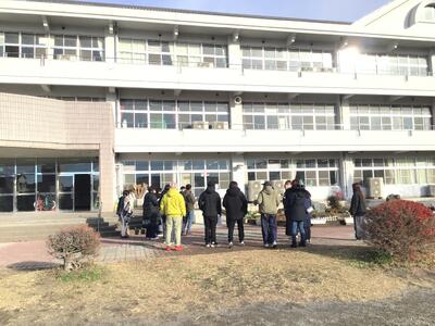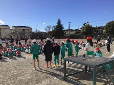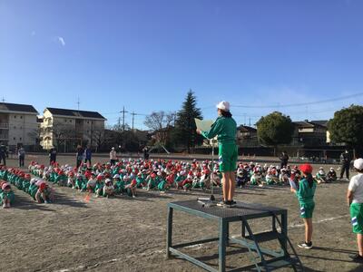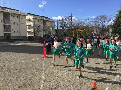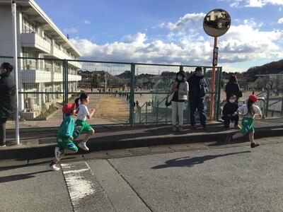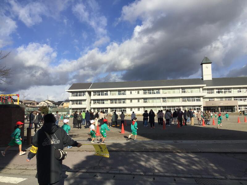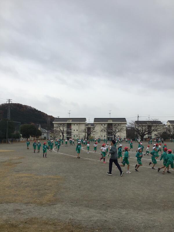今日は、持久走大会。昨日から寒さが一層厳しくなったように感じますが、子供たちは元気に集合しました。